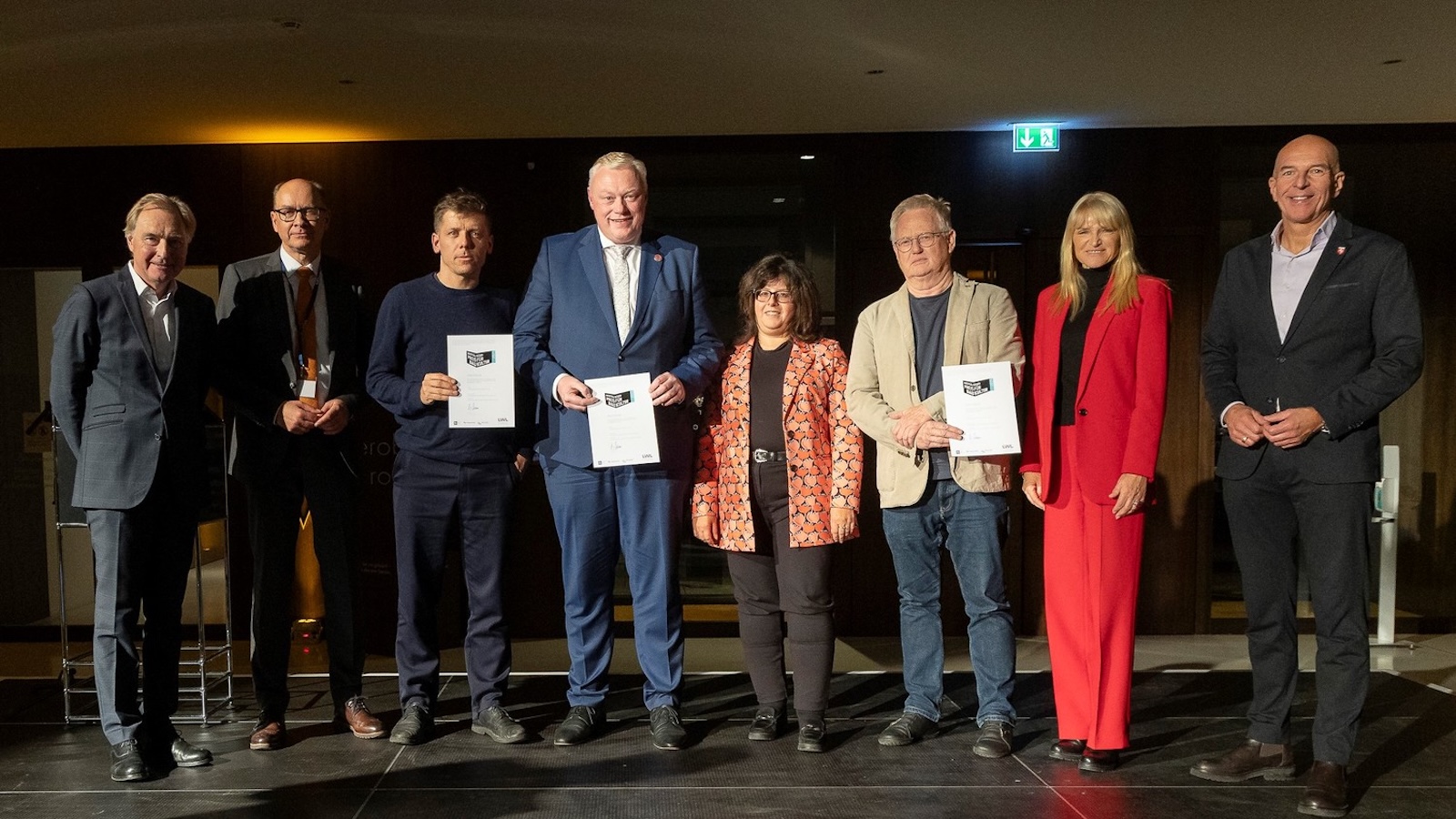 Westfälischer Preis für Baukultur für die Landesgartenschau Höxter (v.l.n.r.): Juryvorsitzender Reiner Nagel, Bundesstiftung Baukultur, Dr. Holger Mertens, Leiter der LWL-Denkmalpflege, Landschafts- und Baukultur in Westfalen, Franz Reschke, Franz Reschke Landschaftsarchitektur, Bürgermeister Daniel Hartmann und Claudia Koch, Baudezernentin der Stadt Bielefeld, ehem. Baudezernentin der Stadt Höxter, Klaus Werner Rose, GTL Landschaftsarchitektur, LWL-Kulturdezernentin Dr. Barbara Rüschoff-Parzinger, LWL-Direktor Dr. Georg Lunemann.