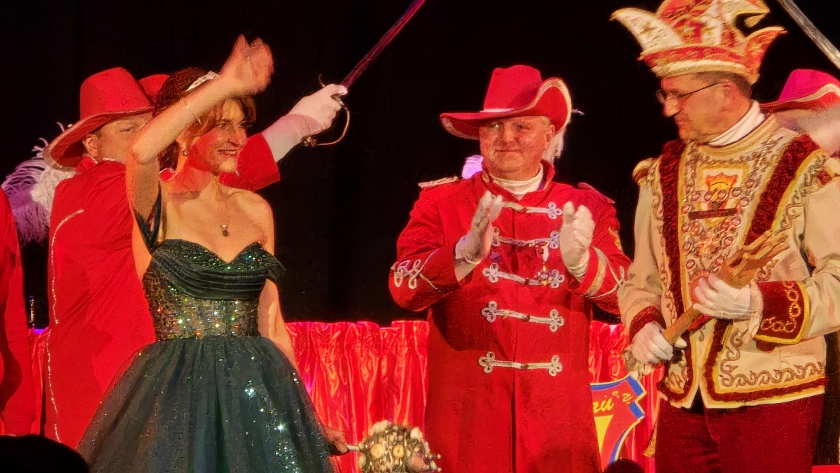 Brakel (TKu). Tosender Jubel, gespannte Erwartung und eine ausgelassene Stimmung prägten den vergangenen Samstagabend in der vollbesetzten Stadthalle Brakel. Die närrische Veranstaltung war ausverkauft, berichtet der Karnevalsverein. Erstmals feierte der Karnevalsverein „Brakel Radau“ hier den Höhepunkt des Saalkarnevals: die feierliche Proklamation der neuen Karnevalsprinzessin der Session 2026. Um exakt 21.32 Uhr wurde es besonders spannend. Der rote Samtvorhang schloss sich, eine geschlossene Sänfte, beziehungsweise geheimnisvolle Kiste, wurde durch den langen Mittelgang getragen und auf der Bühne abgestellt. Wenige Augenblicke später entstieg ihr Friederike Antonia Conze im netheauengrünen Festkleid. Mit ihrem Auftritt brandete tosender Applaus auf: Die 41-jährige Brakelerin ist die neue Karnevalsprinzessin und regiert die Brakeler Narrenschaft nun gemeinsam mit Prinz Mark I. Elberg, dem „vorbildlich lenkenden Superjeck“.