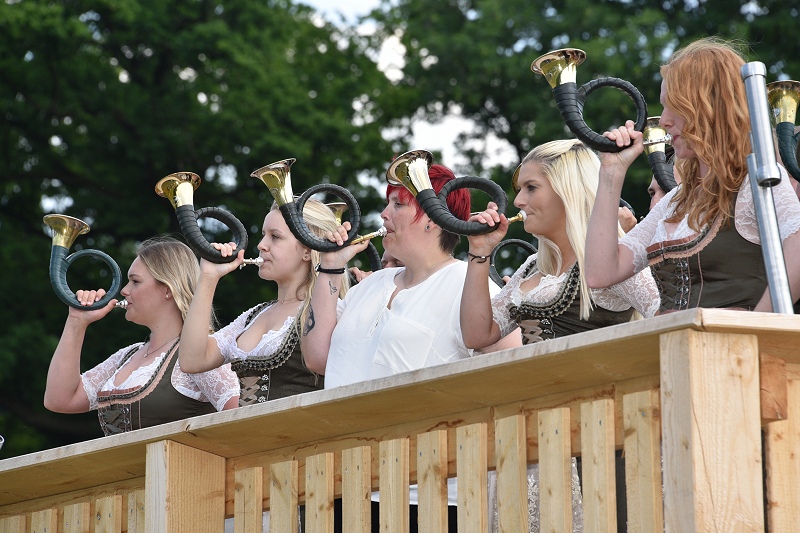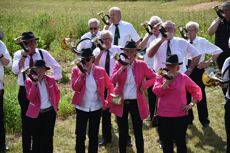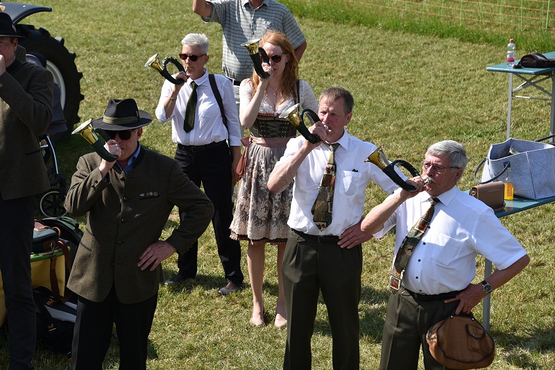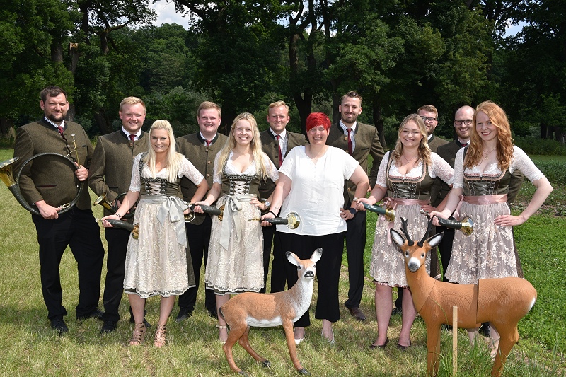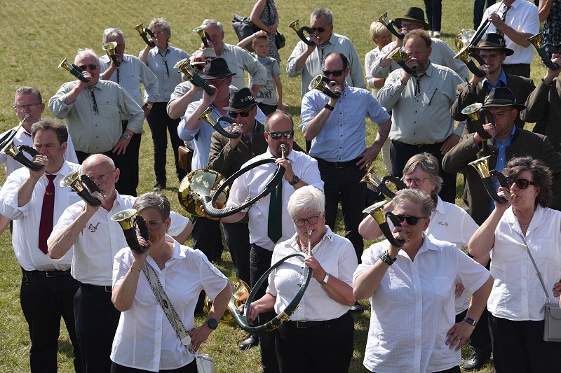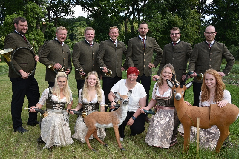 Höxter (TKu). Die Geschichte der Menschheit ist eine Geschichte der Jagd – oder mit anderen Worten: Die Jagd stand wahrscheinlich an der Wiege der menschlichen Kultur, wie man auf der Landesgartenschau von aktiven Jägerinnen und Jägern zu hören bekam. Kaum ein Bereich des Lebens sei seit der Urzeit so untrennbar mit der Musik verbunden, wie die Jagd. Und so erklang am Sonntag viele Stunden lang traditionelle Jagdmusik auf der Landesgartenschau in Höxter. Hinter dem großen Zelt bei „Wir vom Land“ fand am Sonntag mit 18 Bläsercorps aus dem ostwestfälischen Raum und dem südlichen Niedersachsen ein großes Jagdhornkonzert statt. „Der gemeinsame Auftritt der Bläsergruppen sei in dieser Dimension einzigartig gewesen“, erklärt Achim Frohss, Vorsitzender der Kreisjägerschaft Höxter. Und dabei ist das Jagdhornblasen längst nicht mehr nur Männersache – auch Damen-Truppen im Dirndl oder traditioneller Kleidung waren mit von der Partie. Gegen 16:30 Uhr erfolgte das große Finale, bei dem alle Bläsergruppen gemeinsam ein Lied anstimmten. „Das Singen, Musizieren und Jagdhornblasen beinhaltet einen lebendigen Teil der Jagdausübung, des weidmännischen Empfindens und des jagdlichen Brauchtums. Wo immer sich Jäger und Jagdfreunde zusammenfinden, wird gesungen, musiziert und die Jagdhörner ertönen“, wusste ein Jägersmann auf der LGS zu berichten. Die Gäste waren begeistert von der Musik, die vom einfachen Signal, bis hin zum konzertanten Jägermarsch reichte, von deutscher über österreichischer bis hin zu französischer Jagdmusik.