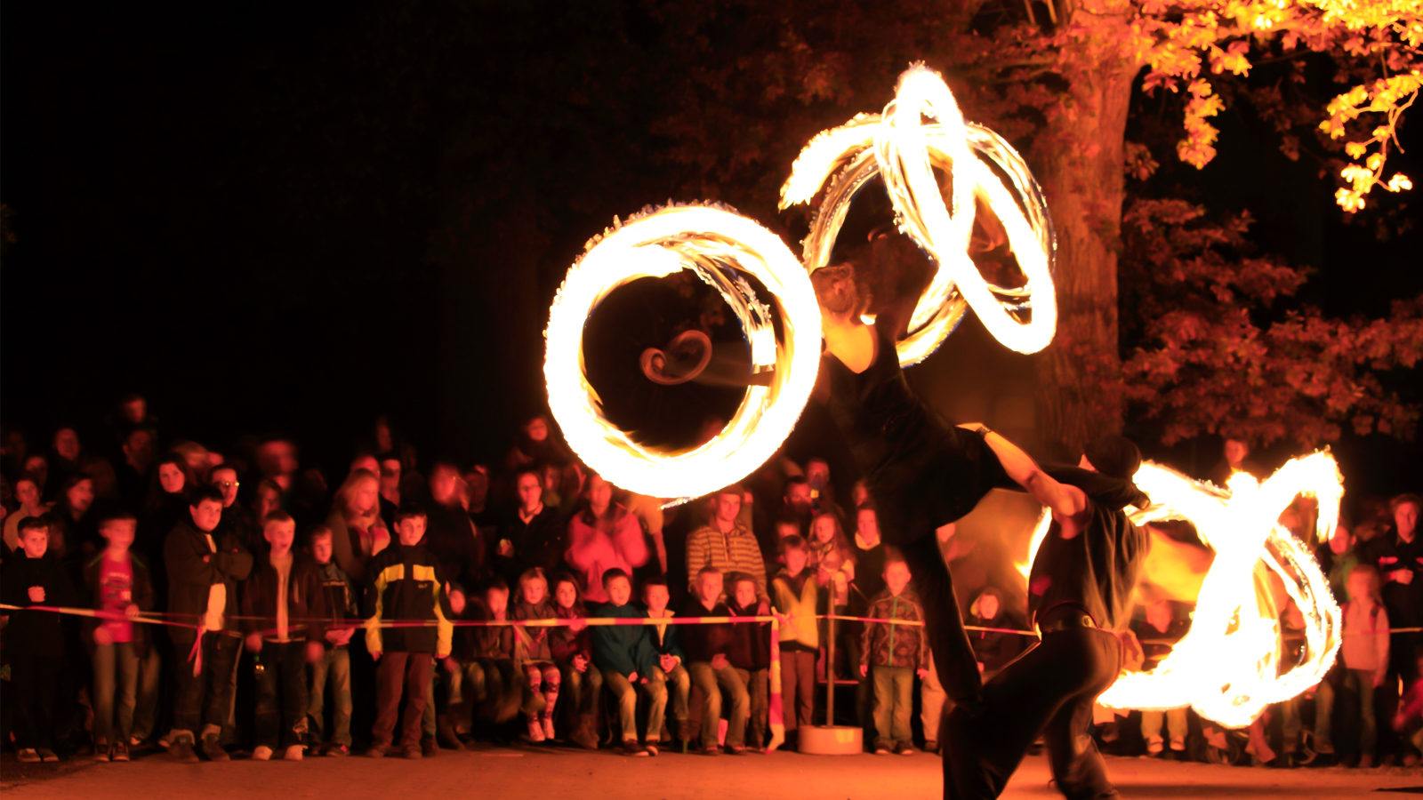 Zum Abschluss des Lichterfestes wird um 19.30 Uhr eine spektakuläre Feuershow gezeigt. Mit perfekter Technik beim Schwingen der Feuerfackeln, an zwei Seiten brennenden Stäben und funkensprühenden Ketten entstehen eindrucksvolle Feuerbilder in der Nacht. „Spiral Fire“ erhellt die Dunkelheit – ein aufregendes und unvergessliches Erlebnis aus Feuer, Show und Akrobatik.