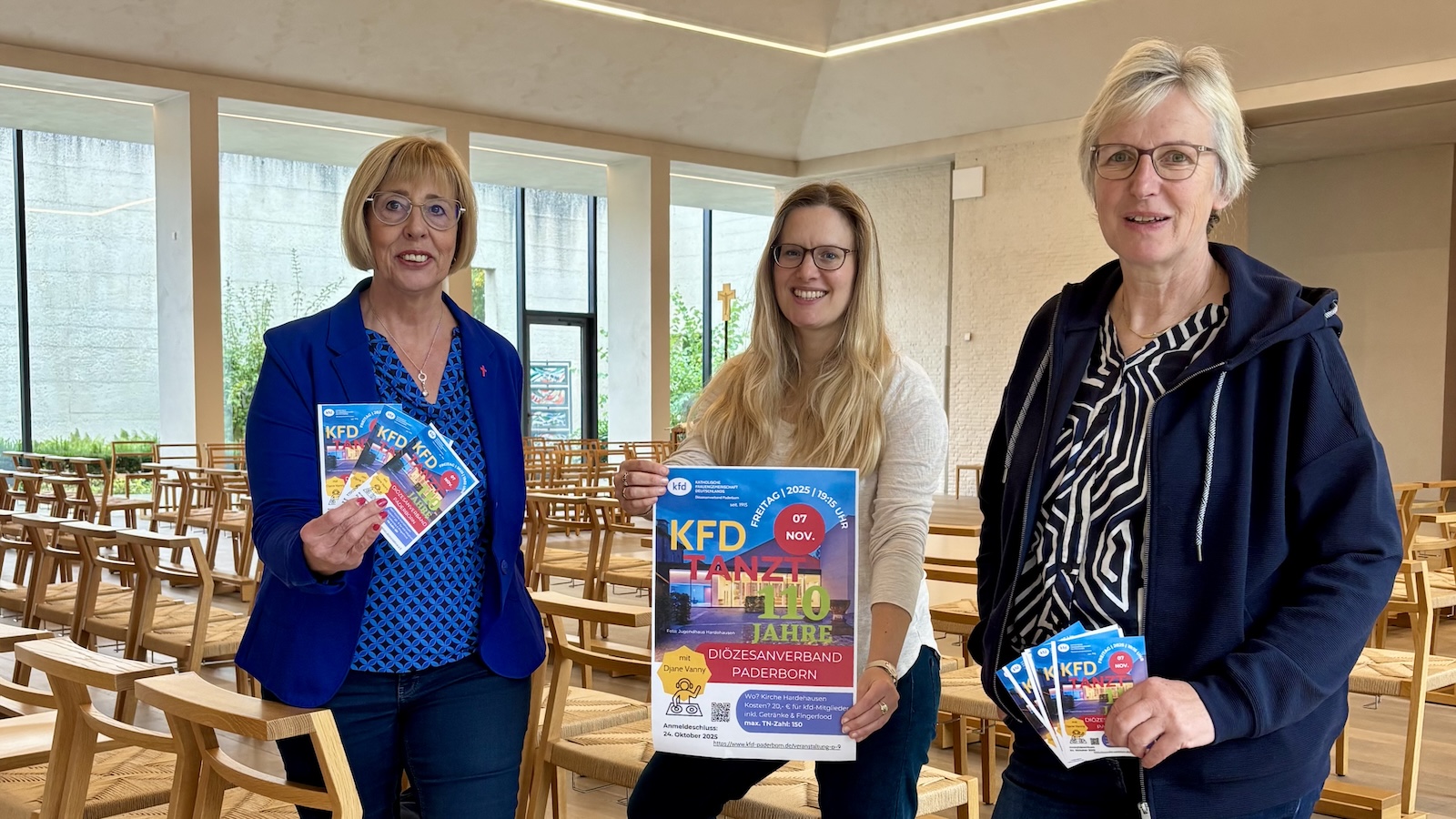 Hardehausen (red). Der Diözesanverband Paderborn der Katholischen Frauengemeinschaft Deutschlands (kfd) feiert sein 110-jährige Bestehen mit einer Geburtstagsfeier der besonderen Art. Am Freitag, 7. November, heißen die Frauen des Leitungsteams alle Interessierten unter dem Motto „Bewegte Kirche: kfd tanzt“ in der Kirche in Hardehausen willkommen. In Anlehnung an das Gründungsjahr 1915 findet die Party von 19.15 bis 22 Uhr statt. Die engagierte DjaneVanny kennt sich mit Partys an besonderen Orten aus. Sie durfte schon in der Kirche in Gehrden als Diskjockey einen besonderen Abend musikalisch begleiten. „Schon über 100 Anmeldungen lassen die Vorfreude steigen“, sagt die stellvertretende Diözesanvorsitzende Gabriele Kaufhold. „Wir haben 150 limitierte Plätze. Wer dabei sein möchte, muss schnell sein“ ergänzt Ursula Graskemper aus dem Projektteam „kfd tanzt“.
