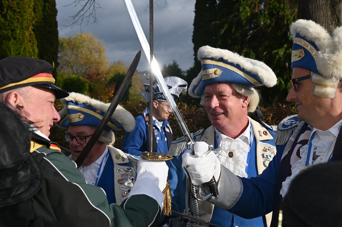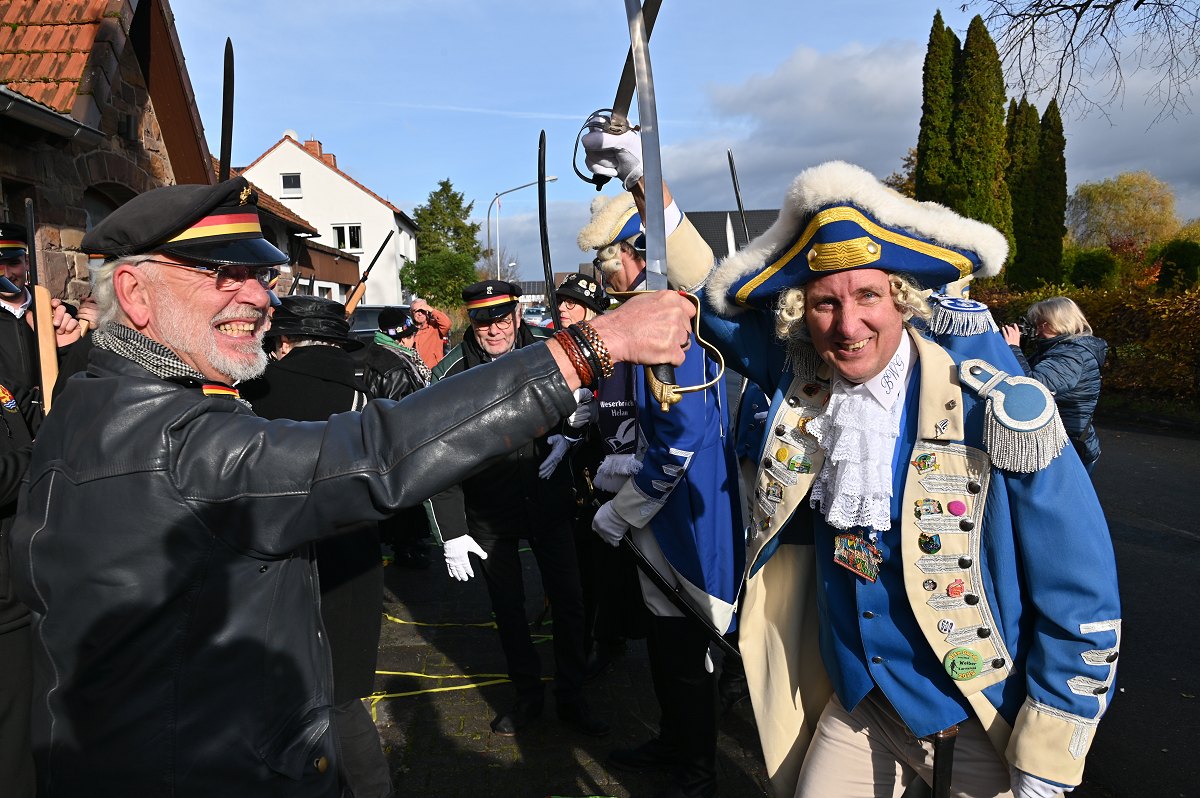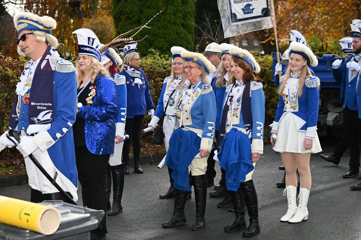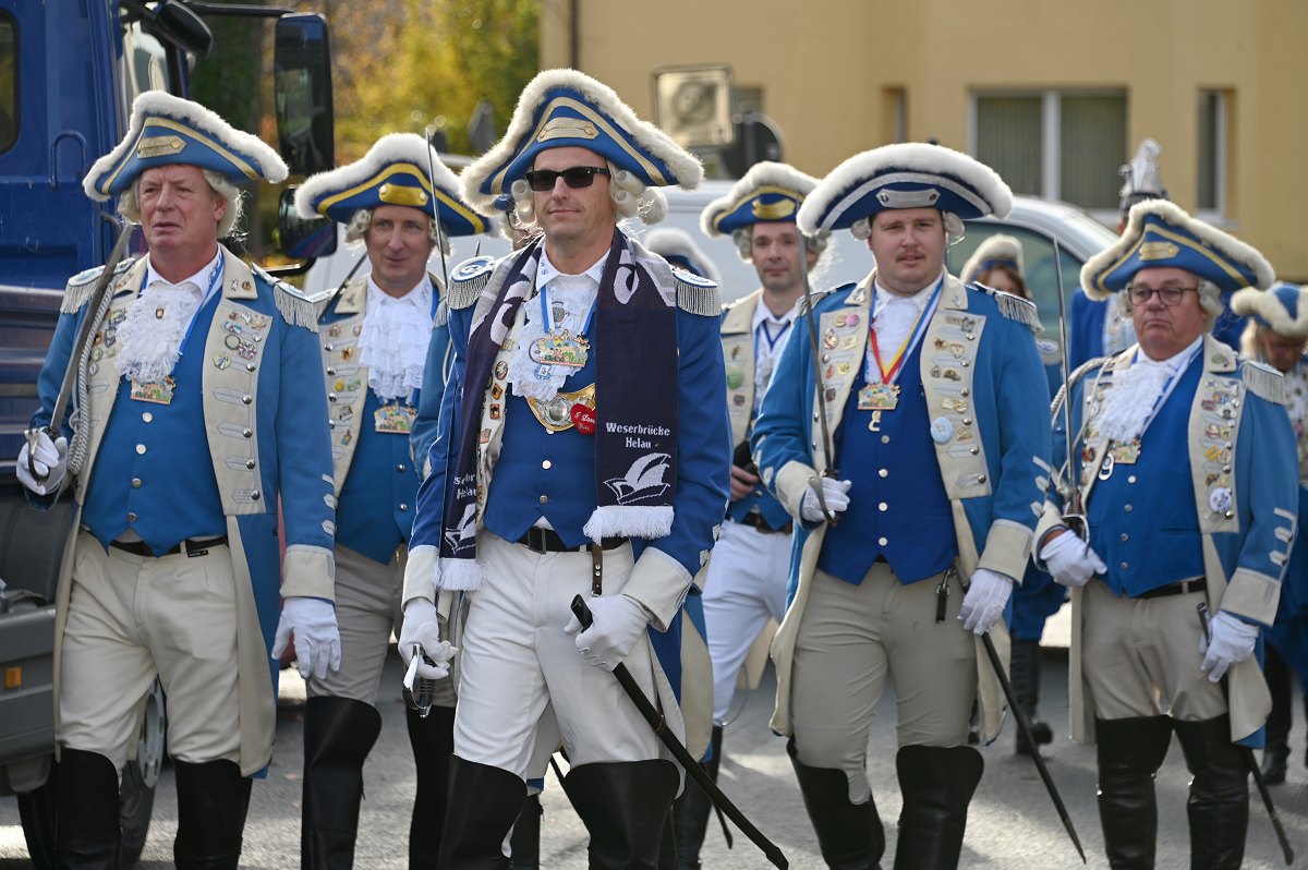 Kreis Holzminden/Höxter (TKu). Wo könnte die närrische Zeit in den Kreisen Holzminden und Höxter besser starten als genau dort, wo Niedersachsen und Nordrhein-Westfalen aufeinandertreffen? Passenderweise fiel der Start in die fünfte Jahreszeit am „Elften im Elften“ um exakt 11:11 Uhr auch dieses Jahr wieder auf die Landesgrenze und das mit einem besonderen Anlass: Der Carnevalsverein Weserbrücke e.V. (CVWB) feiert sein 50-jähriges Vereinsjubiläum. Unter dem Motto „Der CVWB glitzert grenzenlos – im Dreiländereck ist richtig was los!“ erlebten zahlreiche Närrinnen und Narren einen Auftakt, der ausgelassener kaum sein könnte. Die Jecken aus Beverungen und Lauenförde ließen es sich nicht nehmen, traditionsgemäß den Schlüssel zum Roten Rathaus in Lauenförde zu ergattern und das Rathaus zu erstürmen. Und obwohl die Wächter des Schützenvereins Lauenförde von 1882 e.V. mit viel Energie und einer ganzen Verteidigungsstrategie anrückten, war der Sieg der Carnevalisten am Ende schon wieder unausweichlich. Der Vorsitzende des Schützenvereins, Werner Tyrasa, hatte erneut große Töne gespuckt und war fest entschlossen, das Rathaus gegen jede närrische Übermacht zu verteidigen. Eine schwere Kanone, eine kleine Schützen-Armee mit Gewehren und ein „massiver“ Schlagbaum sollten den Vormarsch der Karnevalisten verhindern.