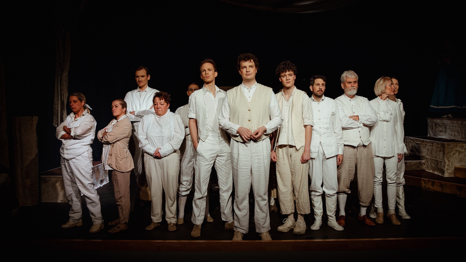 Der Text von Kristo Šagor, der nah an Droste-Hülshoffs Original bleibt und zugleich mit spielerischen Brüchen arbeitet, fordert das Ensemble heraus. Die Figuren erzählen und handeln gleichzeitig, wechseln die Perspektiven, sprechen Sätze gemeinsam oder fallen sich gegenseitig ins Wort. Diese besondere Form lebt vom exakten Timing. Unter der Regie von Stephan Rumphorst entsteht daraus ein präzises Gefüge aus Erzählrhythmen und szenischem Spiel.