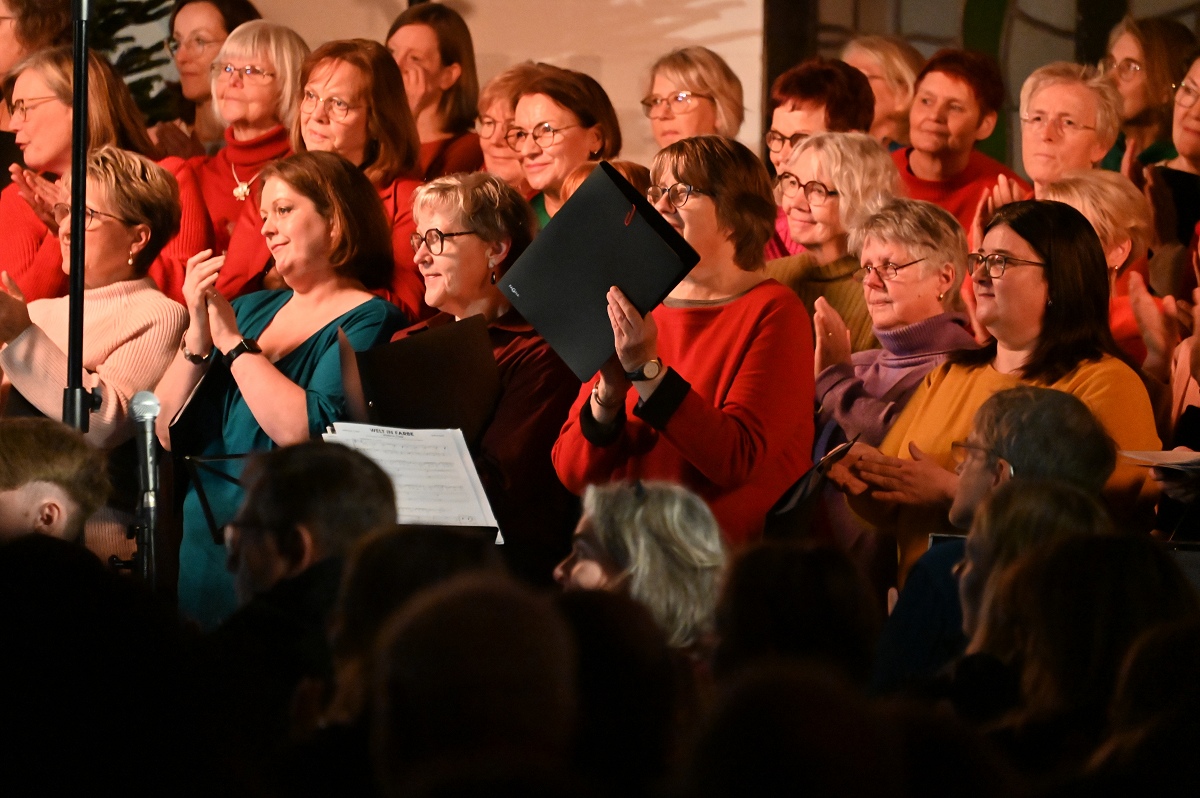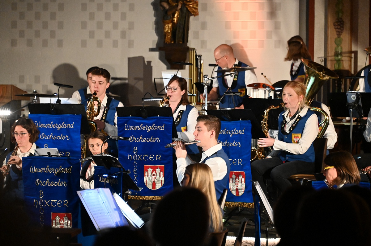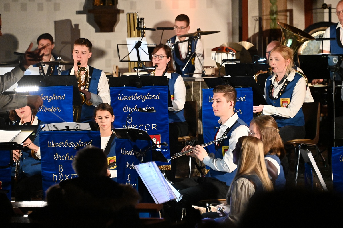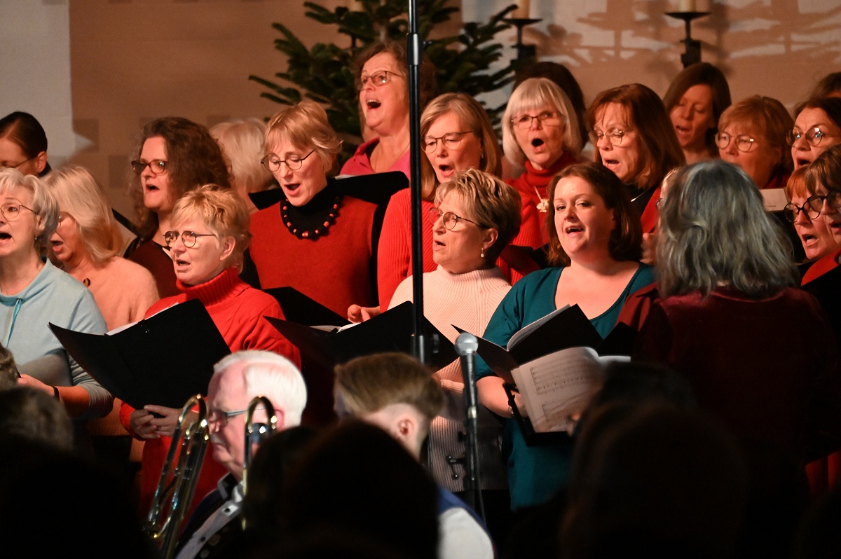Kreis Höxter/Bödexen (TKu). Mehr als 100 Musikerinnen und Musiker aus dem Kreis Höxter sowie über 350 Zuhörerinnen und Zuhörer haben das Weihnachtskonzert des Projekts „Einklang“ zu einem vorweihnachtlichen Höhepunkt im Kreis Höxter gemacht. In der bis auf den letzten Sitzplatz gefüllten St.-Anna-Kirche in Bödexen herrschte eine besondere Atmosphäre: Es wurde mitgesungen, mitgeklatscht und am Ende dankte das Publikum den Mitwirkenden mit lang anhaltendem Applaus und Standing Ovations. Das Konzert war zugleich der erfolgreiche Abschluss eines außergewöhnlichen Musikprojekts im Kreis Höxter, das viele unterschiedliche Menschen zusammengebracht hat. Mit dem zweiten Konzert am vergangenen Sonntag in Bödexen ging das „Projekt Einklang“ offiziell zu Ende. Bereits eine Woche zuvor, am 6. Dezember, hatte das 100-köpfige Ensemble im Rahmen des Weihnachtsmarktes in der Fürstenauer St.-Anna-Kirche ihren ersten Auftritt. Beide Konzerte zeigten, was entstehen kann, wenn musikalisches Engagement, Offenheit und Gemeinschaftsgeist aufeinandertreffen. Über 60 Sängerinnen und Sänger aus dem gesamten Kreis Höxter standen gemeinsam mit dem Weserberglandorchester (WBO) aus Bödexen auf der Kirchenbühne und präsentierten ein abwechslungsreiches und stimmungsvolles Programm.